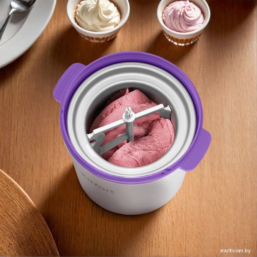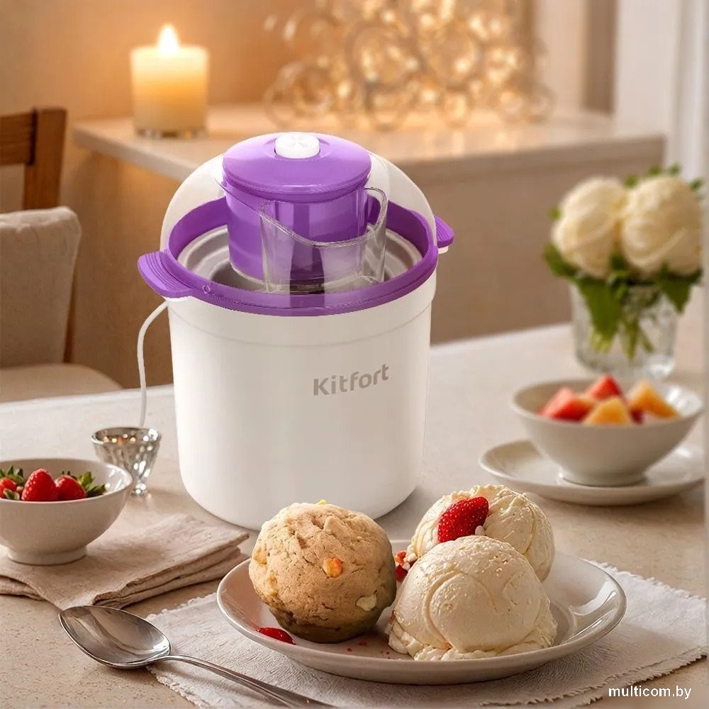 | Информация | -Автоматическая мороженица Kitfort КТ-1847 позволит вам приготовить любимые десерты у себя дома — натуральное мороженое, полезный замороженный йогурт, освежающий сорбет или итальянское джелато. Аппарат реализует технологию перемешивания, обеспечивающую однородную и воздушную текстуру без применения искусственных добавок. -Процесс приготовления очень прост:необходимо заранее заморозить чашу с хладагентом, затем залить охлаждённую смесь и включить мороженицу. Прозрачная крышка позволяет следить за ходом работы, а удобное загрузочное отверстие облегчает добавление ингредиентов прямо в процессе. -Управление мороженицей осуществляется всего одной кнопкой, что делает прибор максимально простым в использовании. В комплекте есть подробная инструкция с рецептами, благодаря чему вы легко сможете экспериментировать с различными вкусами и получать удовольствие от результата. -Мороженица полностью разборная, что облегчает её мытьё и хранение. Прорезиненные ножки предотвращают скольжение по столу, а вместительная чаша на 1.5 литра позволяет приготовить десерт для всей семьи.  |