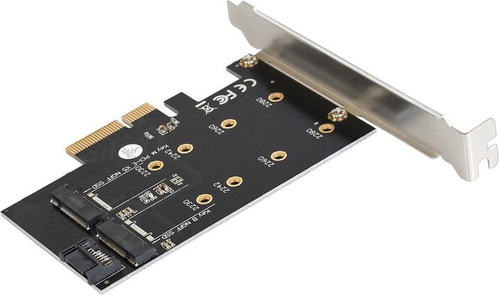 | Информация | Адаптер(переходник) для подключения M.2 SSD c интерфейсом PCIe x4(x2) в слот PCIe на материнской плате. - интерфейс подключения PCI Exrpess X4 Revision 3.0, Serial ATA 3.0 - совместимость с материнскими платами PCIE V2.0 и V1.0 - поддержка (M.2) ключа M, (M.2) ключа B и "B + M" SSD M.2 - интерфейс B-Key может подключать SSD по протоколу SATA M.2 NGFF, затем подключать кабель SATA для подключения материнской платы, использовать PCI-E для подачи питания, без внешнего источника питания - интерфейс M-Key позволяет подключать твердотельные накопители по протоколу M.2 NGFF PCI-E, для передачи данных PCI-E не требуется доступ к кабелю SATA для подключения материнской платы - скорость передачи данных до 6 Гбит/с - размеры дисков: 80, 60, 42 и 30 мм - питание от шины PCI-E - безопасный режим: зеркальное отображение данных с твердотельных накопителей на механические жесткие диски для оптимальной защиты данных - объединяет емкость твердотельных накопителей и м жестких дисков 2-в-1 - совместимость с SATA 3.0 - поддержка NVMe B/M m.2 SSD, включая 2230, 222, 2260 и 2280 дисков - поддержка Win 7/Win 8/Win 8.1/Win 10 32&64Bit/Windows Server 2003/Server 2008/R2/Server 2012/R2/DOS, Linux, FreeBSD, Novell, UnixWare/OpenUnix 8 Комплектация: - низкопрофильная заглушка - винты - отвертка - термопрокладка - кабель SATA (с защелками) |