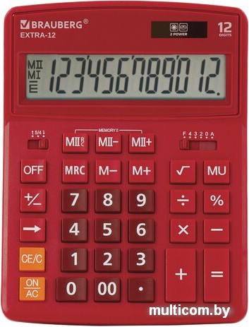 | Перечень функций | Калькулятор производит все основные арифметические действия: возведение в степень, вычисления с процентами, извлечение квадратного корня. Незаменим для бухгалтеров благодаря наличию клавиш двойной памяти, «00» и MU для расчетов налогов и торговой наценки. Переключатели округления и положения десятичного знака позволяют производить нужные настройки. Большой двенадцатиразрядный дисплей отображает большие значения с высокой точностью округления. |