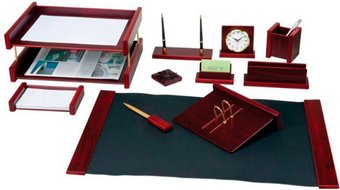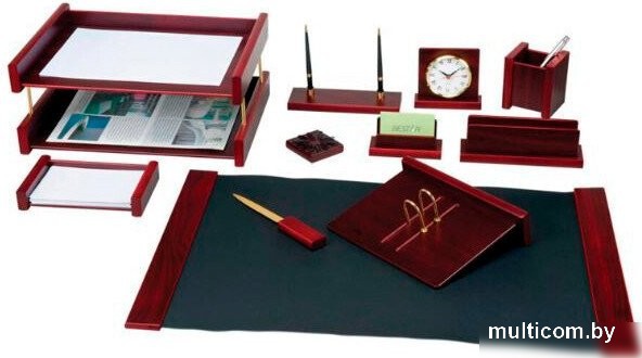 Информация | - Деревянный набор будет хорошо смотреться на столе в любом офисе и станет отличным подарком, как для руководителя, так и для сотрудников. - Выполнен из дерева высокого качества, благородный сдержанный стиль. - Состав набора: лоток, подставка для ручек, стакан для ручек, подставка под листы для записей, визитница, подставка для перекидного календаря, коврик для письма, нож для вскрытия конвертов, скрепочница магнитная, часы, подставка для писем. - Не упустите возможность сделать ваш офис стильным и функциональным! |