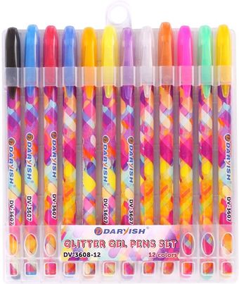 Информация | Набор ручек гел. 12цв. "Darvish" с блестками, в пласт.пенале, европодвес, д/мал |