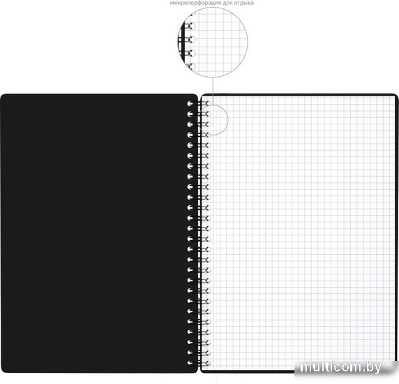 ИнформацияТетрадь общая формата А4 (220x297 мм). Обложка из высококачественного износостойкого матового пластика с фактурой «песок». Печать на обложке выборочным УФ-лаком. В блоке 80 листов в клетку. Бумага офсетная плотностью 70 г/м2. Перфорация для подшивки. Микроперфорация для отрыва. Цвет линовки - синий. Скругленные уголки обложки. Тип скрепления - спираль.