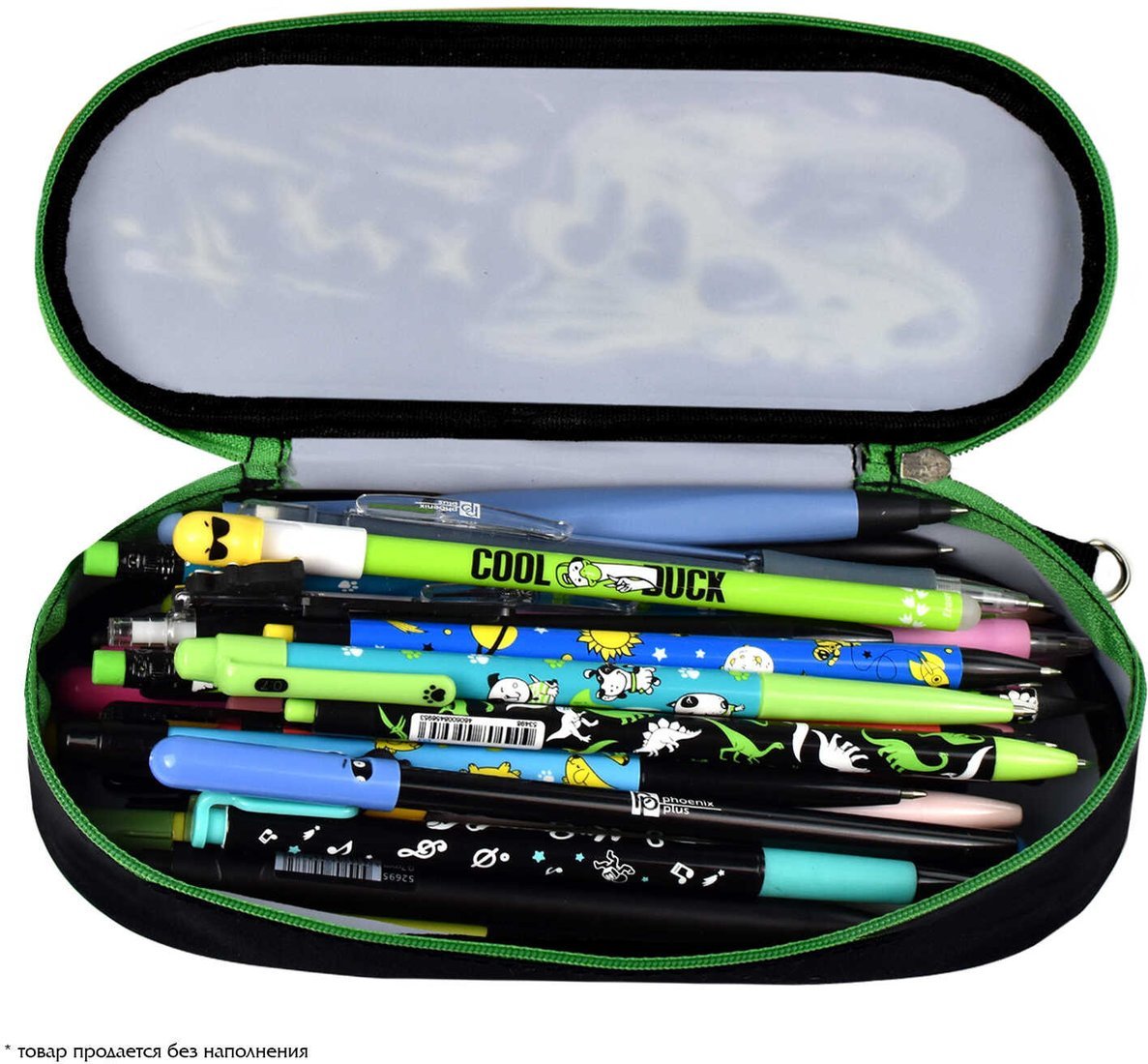 Информация | - Пенал Феникс+ Дино 58015 имеет отделку сублимационной печати по ткани. Материал «собачки» выполнен из репсовой ленты. Форма «собачки» представляет собой хляст. |