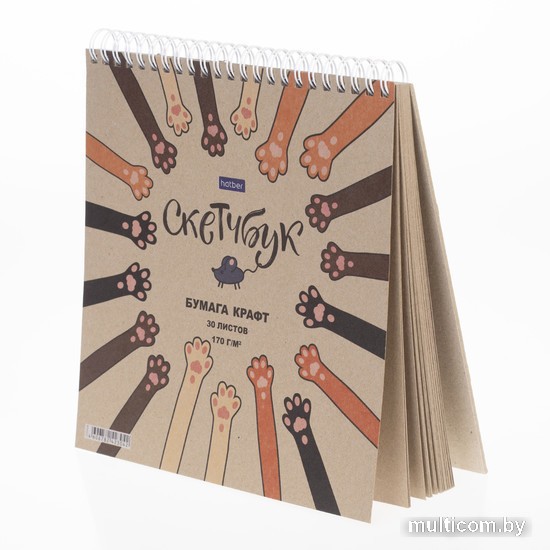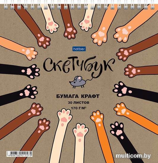 ИнформацияБлокнот SketchBook А5 формата (200х200 мм). Количество листов: 30. Обложка: крафт-картон, жесткая подложка. Внутренний блок: крафт 170 гкв.м, без линовки. Скрепление: гребень. Квадратный формат, несколько непривычный для скетчбуков, в большинстве случаев оказывается самым оптимальным для творчества. Симметричные композиции, коллажи интереснее всего смотрятся на страницах правильной формы. Плотная бумага отлично подходит для любых сухих техник, включая рисунок углем, графитом, цветными карандашами, ручками и тушью, пастелью. Скрепление 'гребень' дает возможность раскрывать скетчбук на 360 градусов, а твердая обложка позволяет делать зарисовки на весу. С помощью скетчбука можно быстро и легко зафиксировать свои идеи и развить творческие навыки. Блокноты SketchBook ТМ Hatber российского производства отпечатаны на современном высокотехнологичном оборудовании и соответствуют стандартам качества.