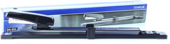 Информация | Степлер Kangaro DS-45L отлично подойдет для полиграфических компаний, архитектурных и других организаций, которым важна глубина скрепления. Выносная опора позволяет сшивать бумагу формата A3 в середине листа, создавая брошюру формата A4. Имеется пластиковый форматир, для регулирования глубины скрепления бумаги. Пластиковая основа степлера не царапает поверхность стола и предотвращает скольжение. |