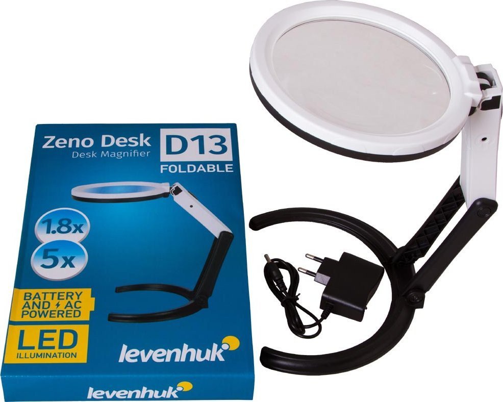 | Информация | - Настольная лупа Levenhuk Zeno Desk D13 выделяется своей уникальной конструкцией. В три простых шага складной штатив трансформируется из устойчивой подставки в удобную ручку. Это позволяет использовать лупу как дома, так и на улице. Модель идеально подходит для любителей рукоделия, моделирования, а также ювелирных и часовых мастеров. - Встроенная подсветка делает работу с мелкими предметами в условиях низкой освещенности комфортной. Она состоит из 12 светодиодов, встроенных в оправу линзы, обеспечивая ровное и яркое освещение, что особенно важно для точных работ. Подсветка может работать как от батареек, так и от сети переменного тока. - Обратите внимание, что напряжение сети в России и большинстве европейских стран составляет 220–240 В. Если вы планируете использовать устройство в стране с другим стандартом напряжения, обязательно подключайте его через соответствующий конвертер. |