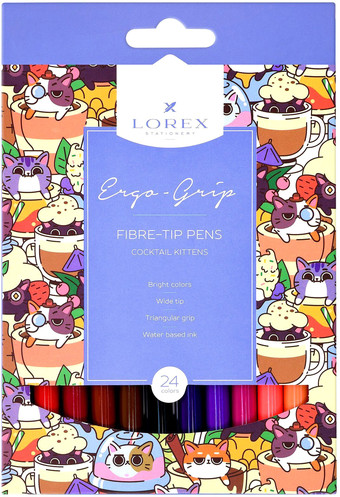 Информация | Яркие и непохожие на всех –фломастеры LOREX! Они перевернут классическое представление о фломастерах._x000D_ _x000D_ Котики точно спасут мир, а особенно такие, как в новой коллекции фломастеров LOREX ERGO-GRIP COCKTAIL KITTENS! Игривые, недовольные, серьезные и веселые – а каких еще котиков вы сможете найти? Наша упаковка притягивает не только взгляд, но и руки. Потому что она покрыта бархатистой и невероятно мягкой матовой ламинацией._x000D_ _x000D_ Фломастер имеет удобный трехгранный захват, который способствует правильному положению пальцев на корпусе. Толщина кончика увеличенная – 3 мм. Поэтому линия получается толстой, поверхность быстро закрашивается._x000D_ _x000D_ Серия представлена наборами в четырех цветностях: 6, 12, 18 и 24 цвета._x000D_ |