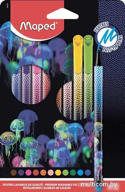 Информация | - Тонкие и точные фломастеры для раскрашивания, рисования и письма - Трендовый дизайн с медузами - Насыщенные цвета для ярких и привлекательных рисунков - Смываемые чернила: удаляются с кожи и с большинства видов тканей - Заблокированный пишущий узел из полиэстера, ? 0,8 мм - Вентилируемый колпачок |