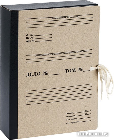 Информация | Папка архивная OfficeSpace А4+ формата предназначена для хранения большого объема документации. Незаменима в бухгалтерии, отделе кадров. Папка выполнена из плотного картона. Корешок папки шириной 80 мм дополнительно обклеен бумвинилом серого цвета. Размер – 330*240*80 мм. Папка вмещает 700 листов. Наличие 4-х завязок обеспечивает дополнительную прочность, а боковые клапаны из плотного картона, обтянутого бувинилом обеспечивают надежную фиксацию вложенным документам.• Тип папки: архивная;• Ширина корешка: 80 мм;• Тип фиксации: с завязками. |
