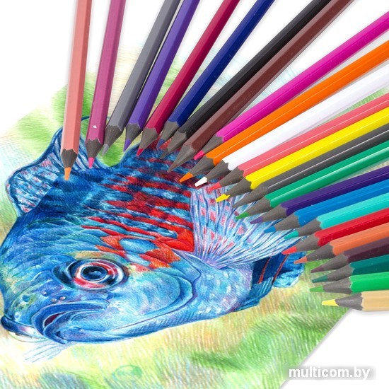 Информация | Цветные карандаши ПИФАГОР «СКАЗОЧНЫЙ ГОРОД» предназначены для детского творчества, а коробка с забавным оформлением порадует как детей дошкольного и младшего школьного возраста, так и взрослых. Набор состоит из 24 цветов: белый, бордовый, красный, алый, розовый, пурпурный, желтый, канареечный, оранжевый, салатовый, светло-зеленый, зеленый, темно-зеленый, голубой, синий, темно-синий, фиолетовый, темно-фиолетовый, светло-коричневый, коричневый, темно-коричневый, каштановый, серый, черный. Шестигранная форма сечения корпуса позволяет карандашу не скатываться с поверхности стола во время занятий рисованием. Карандаши изготовлены из переработанного пластика и имеют лакированный корпус, который при разломе не образует острые края и безопасен для детей. Легко затачиваются. Грифель диаметром 3 мм обладает повышенной прочностью. Все карандаши заточены и поставляются в картонной упаковке с европодвесом. Цветные карандаши ПИФАГОР серии «СКАЗОЧНЫЙ ГОРОД» способствуют развитию творческого мышления, мелкой моторики рук, цветового восприятия, фантазии и воображения ребенка. Спешите приобрести все необходимое для детского творчества в нашем интернет-магазине! |