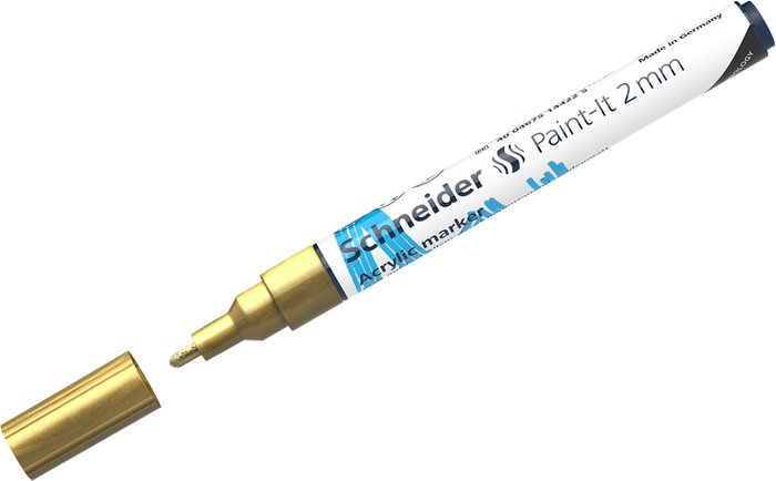 Информация | Акриловый маркер для творчества и хобби. Толщина линии – 2 мм, форма наконечника – пулевидная, цвет чернил - золотой. Акриловые чернила на водной основе быстро сохнут, обеспечивают интенсивность цвета, высокие укрывные свойства и стойкость после высыхания. Не содержат ксилол и толуол. Подходит для работ на различных поверхностях: бумага, дерево, камень, гипс и т.д. Перед использованием маркер необходимо встряхнуть для смешивания и равномерной подачи чернил. |