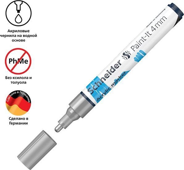 Информация | Schneider Paint-It 320 - акриловый маркер для творчества и хобби. Толщина линии – 4 мм, форма наконечника – пулевидная, цвет чернил - пастельный розовый. Акриловые чернила на водной основе быстро сохнут, обеспечивают интенсивность цвета, высокие укрывные свойства и стойкость после высыхания. Не содержат ксилол и толуол. Подходит для работ на различных поверхностях: бумага, дерево, камень, гипс и т.д. |