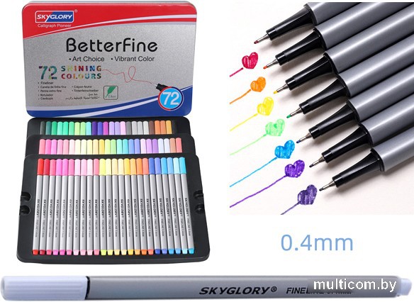 Информация | Набор ручек линеров (капиллярных) SkyGlory (72 цвета), предназначены для особо четкого и тонкого письма, рисования и черчения. |