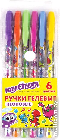 Информация | Ручка имеет круглый яркий с печатью корпус. Сменный стержень длиной 130 мм со стандартным наконечником позволит использовать ручку максимально долго. Диаметр пишущего узла, равный 0,7 мм, создает линию письма, равную 0,5 мм. Набор включает гелевые ручки из 6 различных ярких чернил неоновых цветов: синий, фиолетовый, красный, зеленый, розовый, желтый. |