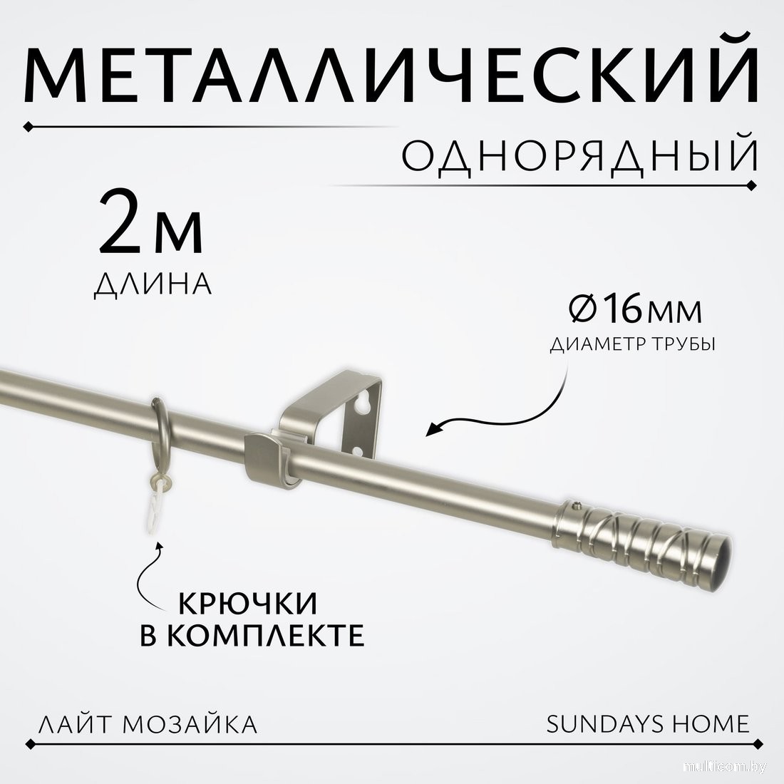 | Информация | - Общая длина карнизов с наконечниками составляет +10 см, что делает его универсальным для различных оконных проемов. - Карниз для штор Лайт Мозайка — это стильный и функциональный элемент, который идеально дополнит ваш интерьер. Его гладкая круглая форма и металлическое сатиновое покрытие придают помещению элегантный вид, а прочный материал обеспечивает долговечность. - Однорядная конструкция карниза позволяет легко крепить любые шторы, а декоративные наконечники добавляют изысканности. Настенное крепление гарантирует надежность и устойчивость, что делает этот карниз отличным выбором для тех, кто ценит минимализм и стиль. - С диаметром 16 мм и длиной 200 см, карниз подходит для большинства стандартных окон, обеспечивая гармоничное оформление вашего пространства. - Если вы ищете практичное и красивое решение для оформления окон, карниз Лайт Мозайка станет идеальным выбором для вашего дома. |