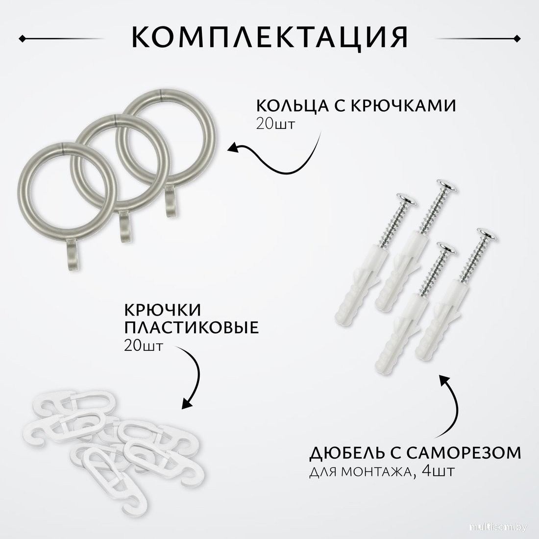 | Крепления для штор | Да кольца, крючки |