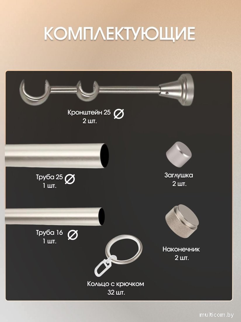 | Информация | - Настенный двухрядный карниз для штор — это идеальное решение для вашего интерьера. Он выполнен из прочного металла и обладает стильным дизайном, который гармонично впишется в любой стиль. - Гальваническое покрытие обеспечивает надежную защиту от коррозии, что делает этот карниз долговечным и устойчивым к внешним воздействиям. Металлический карниз универсален и подходит как для штор на ленте, так и для штор на люверсах. - Благодаря толщине металла 0.6 мм, трубы карниза не прогибаются и сохраняют свою форму даже при длительной эксплуатации. Это гарантирует надежность и долговечность вашего выбора. - В комплект входят 10 бесшумных металлических колец на каждый погонный метр, что обеспечивает легкость в использовании и эстетичный вид. Длина карниза указана без учета наконечников, что позволяет вам точно рассчитать необходимые размеры. - На внутренней стороне этикетки вы найдете инструкцию по монтажу и информацию о комплектации, что делает установку максимально простой и удобной. |