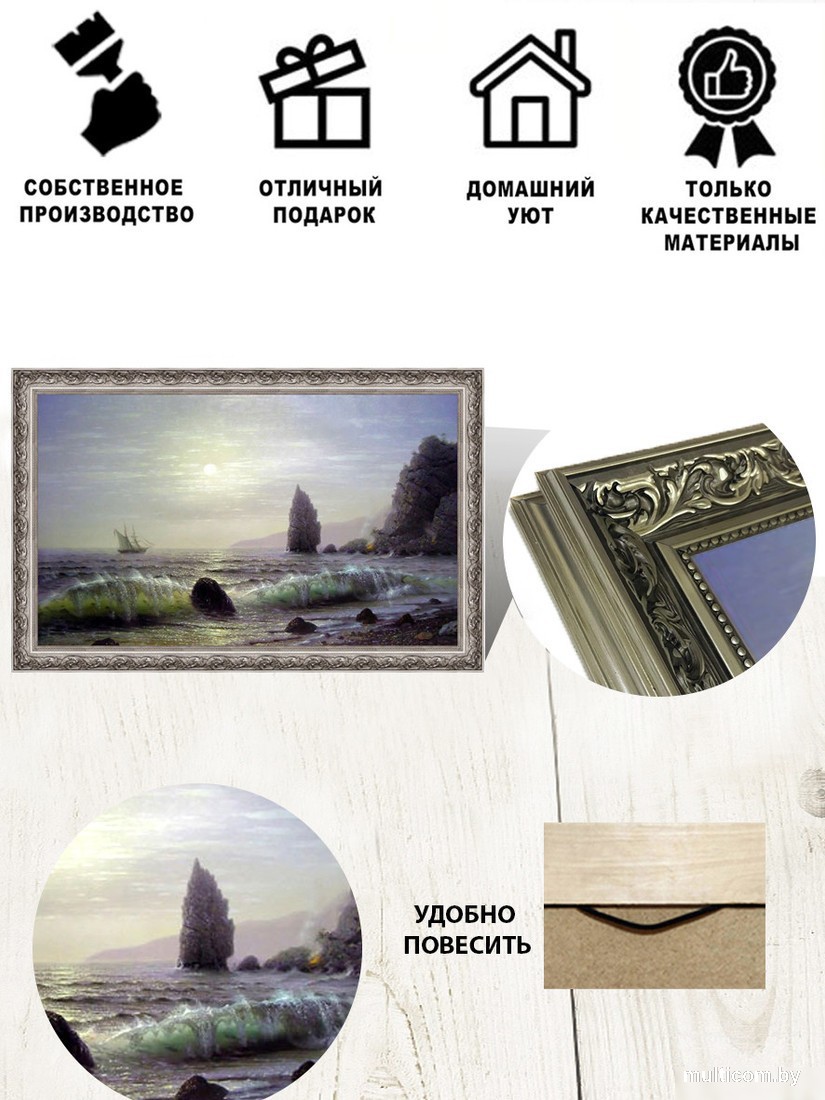 | Информация | - Картина является важным элементом современного настенного декора, который придает интерьеру уют и тепло. - Панно в рамке отлично подходит в качестве подарка на свадьбу, новый год, день рождения, новоселье, юбилей, 8 марта, 23 февраля, день Учителя, день Матери. - Картина выполнена на дизайнерской бумаге с фактурой холста. |