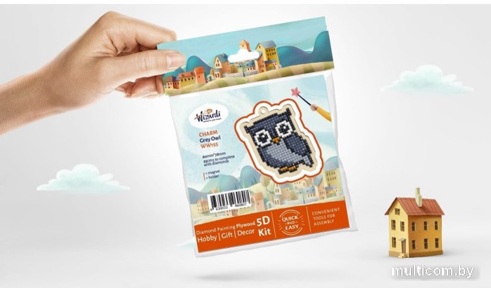 | Комплектация | клей (силиконовый гель), набор страз (в пакетиках), инструкция, лоток для страз, стилус, основа для картины (деревянная), мольберт (подставка), магнит |