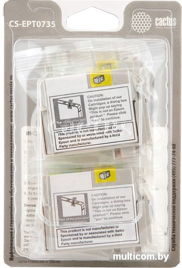 | Совместимость с принтерами | Epson Stylus C79, Epson Stylus C90, Epson Stylus C92, Epson Stylus C110, Epson Stylus CX3900, Epson Stylus CX4900, Epson Stylus CX4905, Epson Stylus CX5500, Epson Stylus CX5501, Epson Stylus CX5505, Epson Stylus CX5510, Epson Stylus CX5600, Epson Stylus CX5900, Epson Stylus CX6900F, Epson Stylus CX7300, Epson Stylus CX7310, Epson Stylus CX8300, Epson Stylus CX9300F |