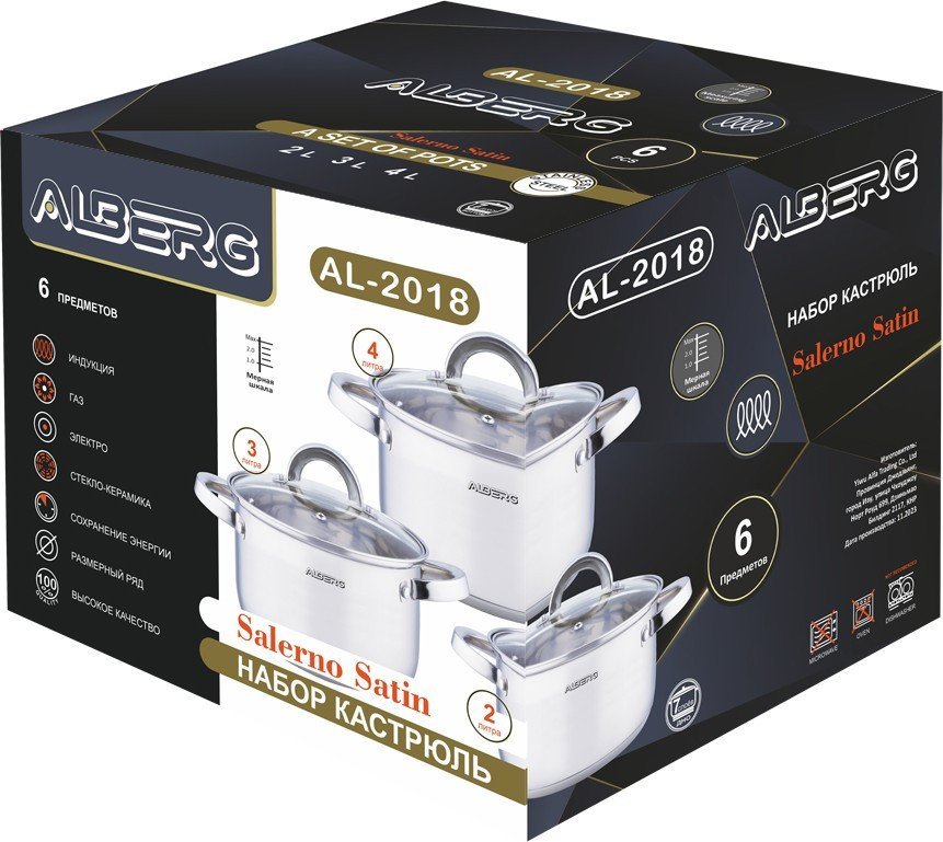 | Количество кастрюль в комплекте | 3 |