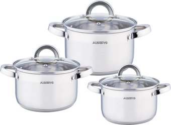 | Состав набора | Набор кастрюль состоит из 3 кастрюль и 3 крышек. Объем кастрюль: - Кастрюля 2.0 л (?16 х 10.5 см) - Кастрюля 3.0 л (?18 х 11.5 см) - Кастрюля 4.0 л (?20 х 12.5 см) |