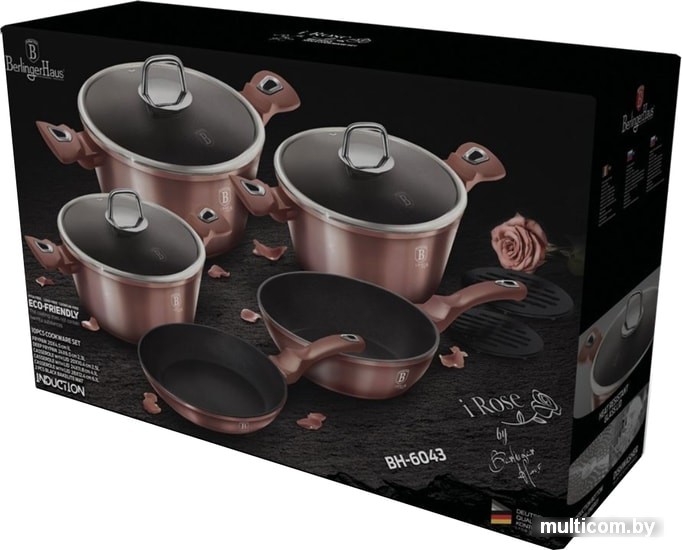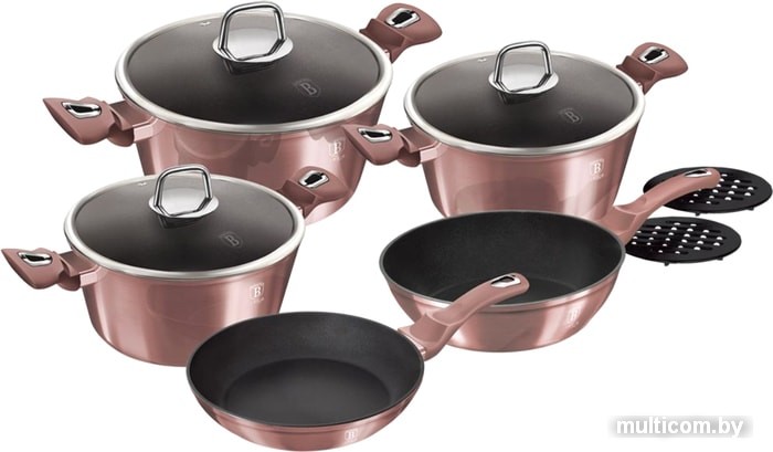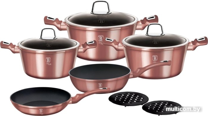 | Состав набора | 3 кастрюли: 2.5 л, 4.1 л, 6.1 л; 2 сковороды: 20 см, 24 см; крышка (3 шт.); бакелитовые подставки (2 шт.) |