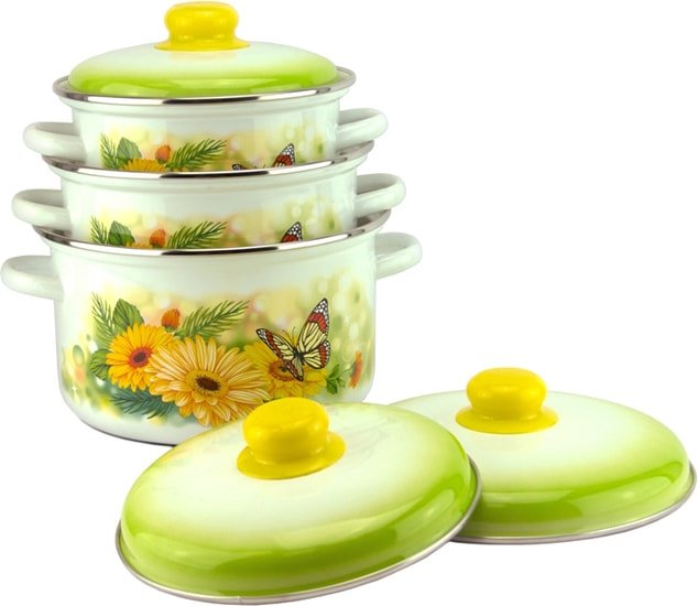 | Состав набора | Кастрюля 2л, 01-1610/6Кастрюля 3л, 01-Б1612/6Кастрюля 4л, 01-Б1614/6 |