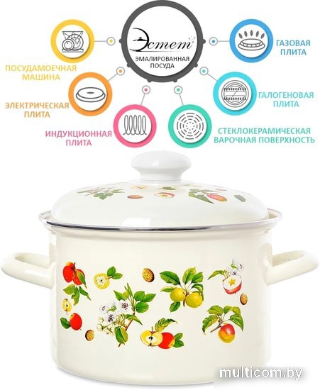 | Информация | Кастрюля Эстет "Гарден" изготовлена из высококачественного стального проката и покрыта стеклокерамической эмалью. Внутри и снаружи - трехслойное глянцевое эмалированное покрытие. Эмалевое покрытие, являясь стекольной массой, не вызывает аллергию и надежно защищает пищу от контакта с металлом. Кроме того, такое покрытие долговечно, оно устойчиво к механическому воздействию, не царапается, а стальная основа практически не подвержена механической деформации, благодаря чему срок эксплуатации увеличивается. Крышка с эмалированным покрытием оснащена удобной ручкой, куполообразная форма крышки минимизирует выкипание в процессе приготовления пищи. Она плотно прилегает к краю, сохраняя аромат блюд. Подходит для всех типов плит, включая индукционные. |