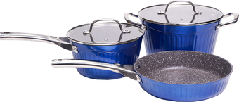 | Состав набора | Кастрюля с крышкой объемом 4,6 л. - 24 х 12,5 см Ковш с крышкой объемом 2,7 л. - 20 х 10,5 см Сковорода диаметром 24 см - 24 х 5,3 см |