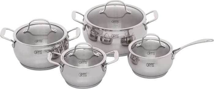 | Состав набора | ковш 16x9 см, кастрюля 16x9 см, 20x11 см, кастрюля 24x12.5 см |