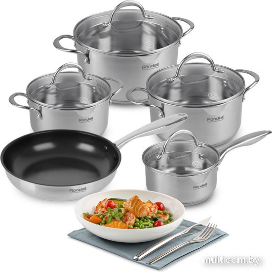 | Информация | ? Набор кастрюль Rondell Erbe RDS-1290 выполнен из высококачественной нержавеющей стали. ? Строгий стальной цвет кастрюль и ковша гармонично впишется в интерьер кухни любого дизайна. ? Тройное вштампованное, а затем вплавленное дно обеспечивает равномерный нагрев продуктов. ? Комбинированные крышки из термостойкого стекла оборудованы стальными ободками с двумя видами отверстий для удобного слива жидкости. ?? Посуда подходит для всех видов плит, включая индукционные. |