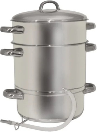 | Информация | Соковарка предназначена для приготовления натурального сока - в сезон фруктов, ягод и овощей она незаменима для этих целей. Принцип работы соковарки прост. В самом низу находится емкость, в которую наливают воду. Потом идет отдел для сбора сока (сокосборник). Он представляет собой кастрюлю с трубкой посередине. Емкость для сырья (фруктов, ягод, овощей) с отверстиями устанавливается сверху. Крышка и шланг с краном входят в комплект соковарки. Вода из нижней части под нагревом превращается в пар, который направляется в отсек для сырья. Там ягоды или фрукты под воздействием пара начинают отдавать свой сок, попадающий в свою очередь в сокосборник. А оттуда по трубке - во внешнюю кастрюлю или банку. Приготовить, например, яблочный сок в этом приспособлении не составит большого труда. Необходимо помыть яблоки, нарезать их, сложить в емкость для сырья, которая находится наверху. В нижнюю емкость налить воду. Собрать всю конструкцию согласно инструкции. Поставить на огонь. На шланг надеть кран-зажим - он должен быть закрыт. По мере нагревания воды, яблоки будут все больше отдавать сок. Через час-полтора можно будет кран-зажим открывать и направлять шланг в банку. Первая порция яблочного напитка, слитая в банку, должна быть обратно вылита в сокосборник, так как она еще недостаточно простерилизована и храниться не будет. Следующие порции сока уже можно будет набирать в простерилизованные банки и закатывать их привычным способом. В сок прямо в сокосборник можно добавить сахар, но можно обойтись и без него. Соковарка отлично сохраняет вкус и аромат овощей, ягод и фруктов, и теперь вы легко можете запастись витаминами на всю зиму. |