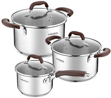 | Состав набора | кастрюля 6.3 л/3.7 л, ковш 2л, крышка (3 шт) |