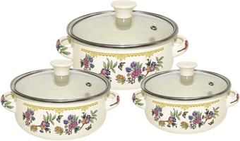 | Состав набора | Кастрюля с крышкой O 12 см – 0,5 лКастрюля с крышкой O 14 см – 0,8 лКастрюля с крышкой O 16 см – 1,2 л |