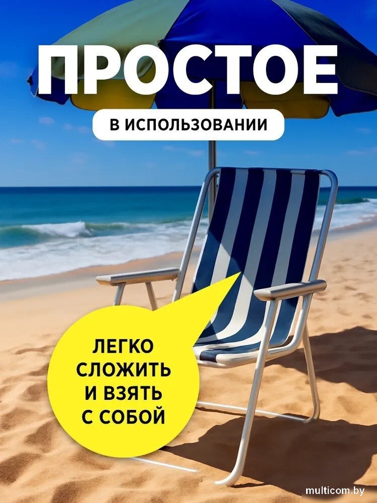 Максимальная нагрузка составляет 80 кг, что обеспечивает надежность при использовании. Конструкция включает подлокотники, что добавляет удобства во время отдыха.