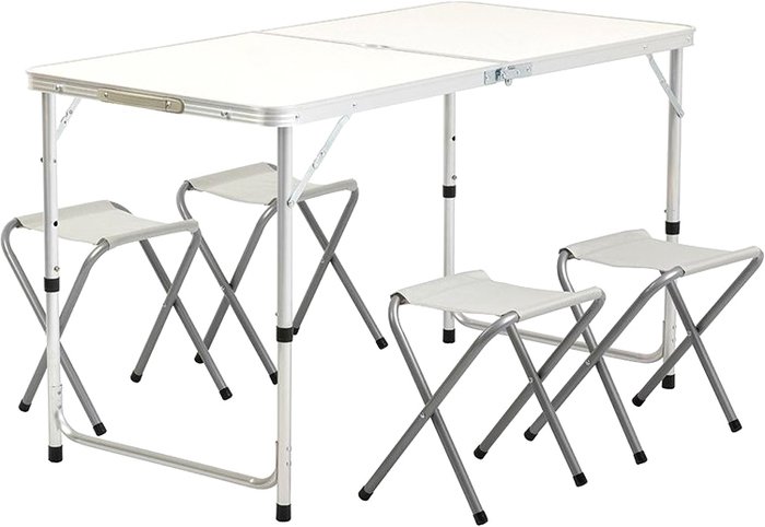 | Информация | Оптимальный вариант для организации пикников, выездов на дачу, охоту или рыбалку - стулья размещаются внутри стола, который убирается в специальный чемодан. |