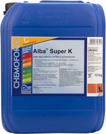| Информация | Альгицид против водорослей, бактерий и грибков в бассейнеПриготовлен с использованием четвертичных аммониевых соединенийСвойства:- абсолютно непенящийся препарат, применимый как для водных аттракционов, так и для гидромассажных ванн- рН нейтральный, совместим со всеми хлорными продуктами- устойчив к высоким температурам и солнечным лучам- обладает длительным эффектом- в рабочей концентрации без запаха и вкуса |