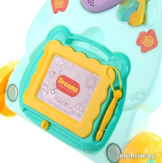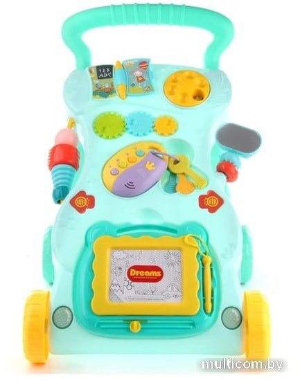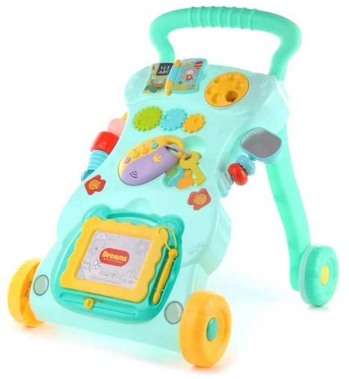 | Информация | · Мини телефончик (погремушка, с кнопочкой пищалкой)· Диск телефона (трещетка)· Доска для рисования· Мини пианино, со световыми и музыкальными (кроткие мелодии) эффектами· Безопасное зеркальце· Удобная ручка для толкания или переноски· Для работы необходимы две батарейки типа АА (в комплект не входят) |