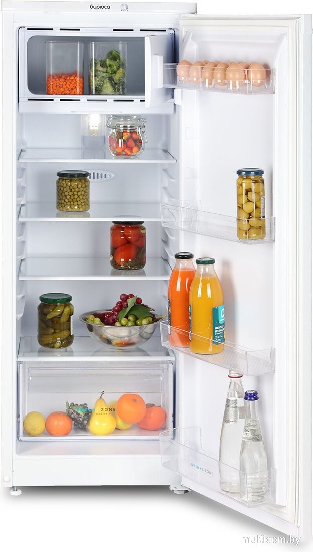 | Информация | - Бирюса M410 — это узкий однокамерный холодильник с морозильным отделением, выполненный в белом цвете. Благодаря своим компактным размерам (122.5x48x60.5 см) он отлично подойдет для небольших кухонь, дач или офисов. Управление осуществляется с помощью надежной механической панели, что делает эксплуатацию максимально простой и удобной. - Холодильная камера оснащена четырьмя полками из стекла и пластика, а также одним ящиком для овощей и фруктов. Такое внутреннее пространство позволяет рационально разместить продукты и обеспечивает легкий доступ к ним. LED освещение делает обзор содержимого камеры максимально комфортным. - Морозильное отделение расположено в верхней части холодильника и имеет объем 27 литров, чего достаточно для хранения замороженных продуктов на несколько дней. Размораживание обеих камер осуществляется вручную, что позволяет самостоятельно контролировать состояние техники. - Среди дополнительных преимуществ модели — низкий уровень шума (до 40 дБ), возможность перевешивания двери для удобства размещения, класс энергоэффективности A и гарантийный срок 3 года. Бирюса M410 сочетает в себе компактность, функциональность и современный дизайн. |