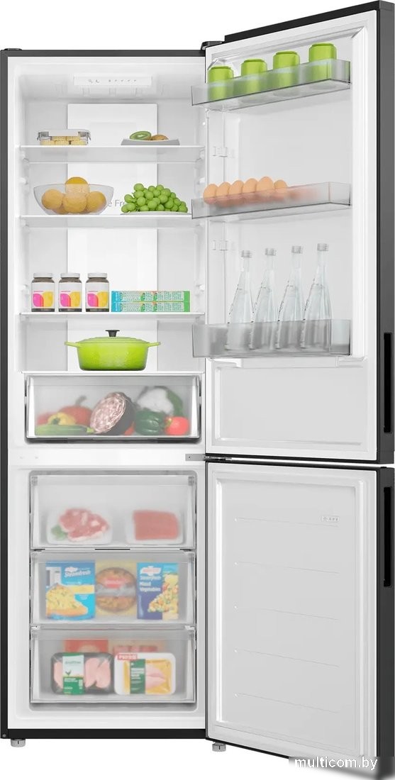 Информация | - Candy Combi CFN6185 — вместительный технологичный холодильник высотой 185 см. Общий полезный объем камер составляет 298 л (207 л — холодильная камера, 91 л — морозильная). - Стильная эргономика. Современный итальянский дизайн, воплощённый в строгих и лаконичных линиях, позволяет с лёгкостью вписать холодильник Candy Combi CFN6185W в любой интерьер. Продуманность конструкции, эргономичность внутреннего пространства, простое и удобное управление добавят больше комфорта в повседневную жизнь, повысят функциональность кухни. - Быстрое охлаждение и равномерное поддержание температуры без наледи. Технология No Frost Plus+ исключает образование наледи и инея в морозильной и холодильной камерах, а также обеспечивает быстрое охлаждение и равномерное поддержание температуры для качественного хранения продуктов. - Гибкость внутреннего пространства. Внутреннее пространство холодильника Candy Combi CFN6185W гибко подстраивается под потребности пользователя благодаря мобильности полок и балконов. - Технология Skin Condencer — плоская задняя стенка. Задняя стенка имеет ровную поверхность и не греется из-за отсутствия на ней радиатора теплоотвода. Применение технологии Skin Сondenser позволило спрятать радиаторы в боковые стенки, улучшив рассеивание тепла. - Всё под контролем. За настройку холодильника отвечает модуль электронного управления с функцией быстрого охлаждения, расположенный в верхней части холодильного отделения. Функция быстрого охлаждения позволяет подготовить холодильную камеру к загрузке большого количества продуктов, привезённых из супермаркета, и избежать скачка температуры, который может негативно влиять на качество и продолжительность хранения продуктов. - Ящик для фруктов и овощей размера ХXL. Глубокий и вместительный ящик размера ХXL для фруктов и овощей позволяет не задумываться о том, хватит ли места для хранения. Овощи, салат и фрукты сохранят свою свежесть надолго. - LED-освещение — видно всё. Светодиодное освещение, расположенное вверху холодильного отделения, даёт равномерный и яркий свет, обеспечивая идеальную видимость в любом уголке холодильной камеры. При этом LED-освещение не влияет на температуру хранения продуктов. - Ключевые характеристики: - Тип: отдельно стоящий - Общий полезный объём: 298 л - Технология охлаждения: Total No Frost - Нулевой зазор при открытии дверцы - Перестановка полок и выдвигание ящиков возможны даже при открытии дверцы на 90 градусов - Интегрированные ручки - Перенавешиваемые двери - Мобильность балконов и полок - Функция быстрого охлаждения - Звуковое оповещение об открытой двери - Уровень шума: 39 дБ - Климатический класс: SN/N/ST (от +10 до +38 °С) - Размер холодильника (В?Ш?Г |