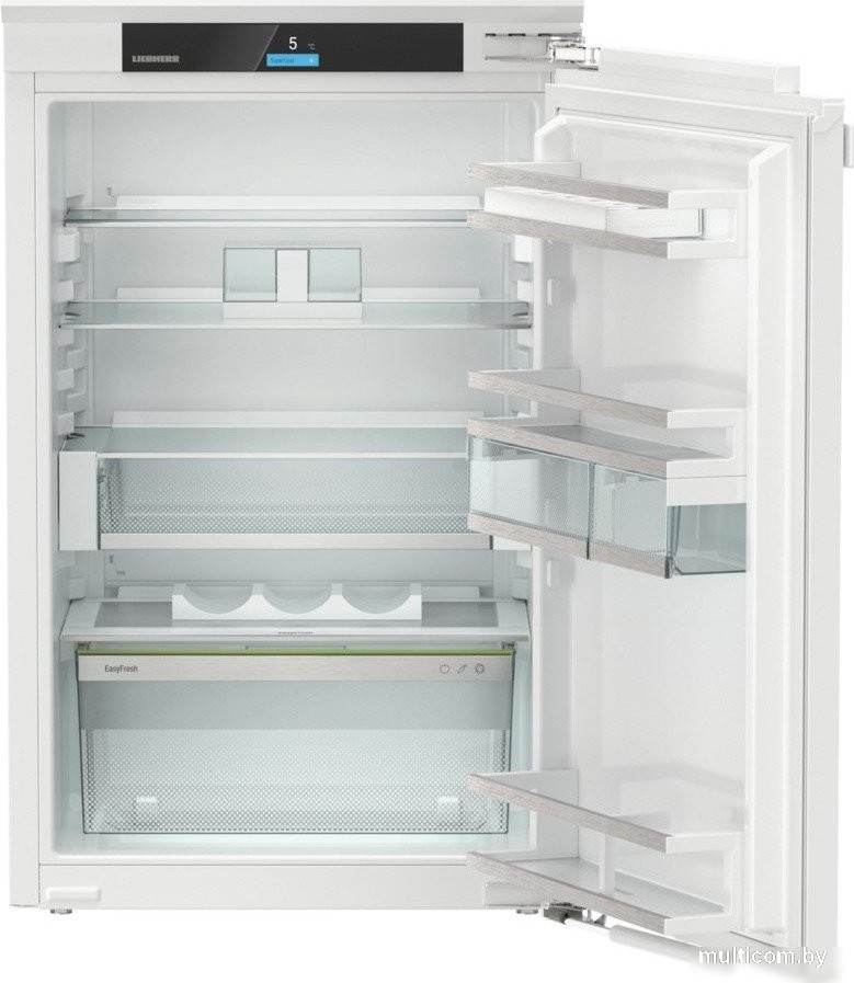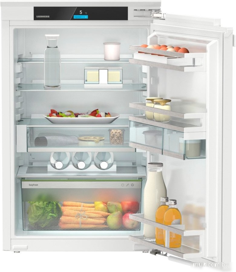 | Информация | EasyFresh Наш контейнер EasyFresh гарантирует свежесть продуктов в вашем доме, как на рынке. Неупакованные фрукты, овощи или плоды: здесь всё хранится оптимально. Благодаря плотному закрытию контейнера под воздействием продуктов в нём повышается влажность воздуха. Таким образом, продукты остаются свежими долгое время. Сенсорный и свайповый экран Ваш Liebherr будет слушаться вас по мановению пальцев: благодаря сенсорному и свайповому экрану вы сможете управлять своим холодильником интуитивно понятно и очень легко. Просто выберите такие функции, как «SuperCool», на цветном экране касанием и проведите пальцем по экрану. Так же легко можно регулировать температуру. А что, если вы не используете дисплей активно? Тогда он показывает вам фактическую температуру. SoftSystem От завтрака до полуночного перекуса – есть множество причин открывать и снова закрывать холодильник. А с вашим Liebherr это действительно весело: благодаря SoftSystem дверь холодильника закрывается мягко и безопасно, а также приятно легко и тихо. При этом хранящиеся во внутренней двери бутылки надёжно стоят – ничего не гремит и не качается. UltraSilent Об этом холодильнике Liebherr вы точно ещё никогда не слышали – просто потому, что он такой тихий, как ни один другой холодильник: Благодаря особой конструкции с низким уровнем шума он почти «неслыханно» тихий. Благодаря высокому уровню бесшумности он устанавливает новые стандарты даже по сравнению с самыми тихими холодильниками. Светодиодное потолочное освещение Светодиодное потолочное освещение освещает внутреннее пространство сверху для хорошего обзора продуктов. Дополнительный светлое пятно: светодиоды расположены перед стеклянными панелями, так что даже полный холодильник освещается хорошо. VarioSafe Стаканчики с йогуртом, стеклянные баночки с джемом или тюбики – вам нужно легко обозримое место для таких небольших продуктов? В вашем Liebherr он есть: VarioSafe. Оно не только создаёт порядок, но и легко изменяемо. Просто поместите двухступенчатый, регулируемый по высоте VarioSafe в холодильнике там, где он вам больше всего подходит. Комфортная регулировка высоты стеклянных панелей Настройка языка EnergySaver Блокировка экрана HolidayMode SuperCool Сигнал открытой дверцы SabbathMode Полка для 3 бутылок Маслёнка Лоток для яиц Сменный дверной уплотнитель Оснащение, пригодное для мытья в посудомоечной машине |