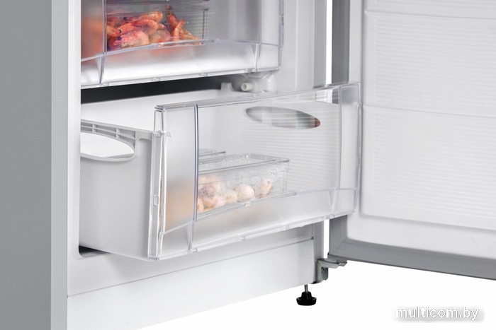 | Информация | Морозильник NORDFROST DF 165 SAP с объемом камеры 210 л подходит для хранения всех необходимых продуктов для большой семьи. Высота устройства 144см. Откорректировать температуру позволит механический термостат, расположенный на панели управления внутри морозильной камеры. Морозильник имеет ручную систему оттаивания и ламинированную внутреннюю поверхность с антибактериальным покрытием. Максимально низкая температура в модели -18°С. Морозильная камера состоит из 3-х цельных выдвижных пластиковых ящиков, 3-х полок с откидной шторкой. Ножки регулируются по высоте и помогут ровно выставить морозильник относительно пола. Дверь с интегрированной горизонтальной ручкой имеет возможность перенавешивания на другую сторону для комфортного открывания и установки модели в удобном месте. Корпус морозильника выполнен в серебристом цвете. |