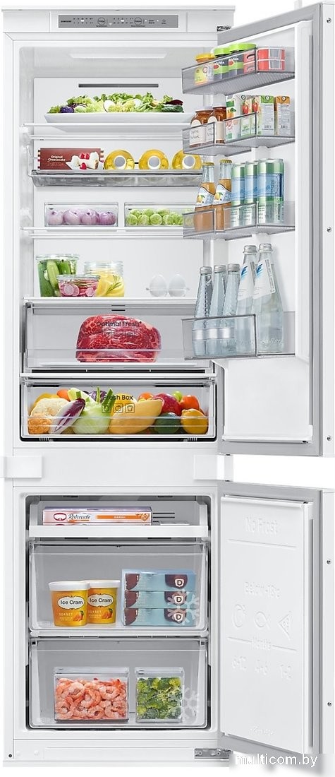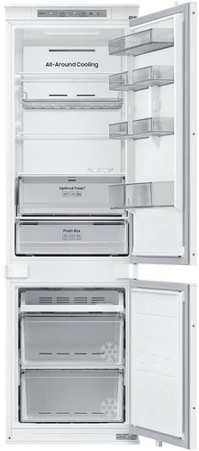 | Информация | -Холодильник Samsung AI BRB70F26CES0EO - это современная встраиваемая модель с нижней морозильной камерой, созданная для максимального удобства хранения продуктов и экономии пространства на кухне. Благодаря технологии SpaceMax™ внутренний объем увеличен без изменения внешних габаритов, а эффективная теплоизоляция позволяет разместить больше продуктов. -Устройство оснащено системой полного No Frost, что предотвращает образование инея и избавляет от необходимости размораживания. Система All-Around Cooling обеспечивает равномерное распределение холодного воздуха по всему пространству, а шухляда Optimal Fresh+ поддерживает более низкую температуру для долгого хранения мяса и рыбы. -Функционал холодильника расширен за счет интеграции с приложением SmartThings, что дает возможность удаленного контроля, отслеживания энергопотребления, получения уведомлений о сервисе и управления внутренним освещением. Также присутствуют режимы Power Freeze для быстрой заморозки и Eco для снижения расходов на электроэнергию. -Удобство использования дополняют перенавешиваемые двери, внутренний дисплей, встроенные ручки и крепление фасада на скользящих направляющих. В холодильнике предусмотрены стеклянные полки, полка для вина, контейнер для яиц и два ящика для овощей и фруктов, что делает его универсальным решением для современной кухни. |
