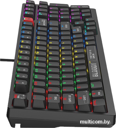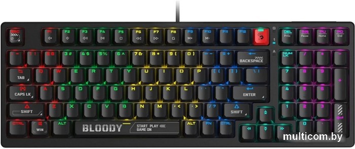 | Информация | ? Механические свитчи Bloody BLMS обеспечивают впечатляющую скорость и ощущения во время игры! ? Быстрая замена свитчей совместима с 3-контактными и 5-контактными механическими переключателями. ? Тихий набор текста благодаря прослойке из силикона, которая уменьшает эффект эха при наборе текста. ?? Силиконовые накладки снижают уровень шума при соприкосновении внутренних деталей. ? 25 игровых кейкапов из PBT для долговечности и быстрого возврата в исходное положение во время игры. ? Компактный дизайн с 98 клавишами обеспечивает функциональность, эквивалентную полноразмерной клавиатуре. ? Размещение кабеля по 3 направлениям для более удобного использования. ? Регулируемая высота с двумя углами наклона - 3° и 8°. ? Подсветка RGB с возможностью настройки 16.8 миллионов цветовых вариантов. ? 10 эффектов подсветки по умолчанию и 7 игровых режимов для настройки под свои предпочтения. ? 4 MБ встроенной памяти для хранения 7 видов конфигураций клавиш на разных компьютерах. |