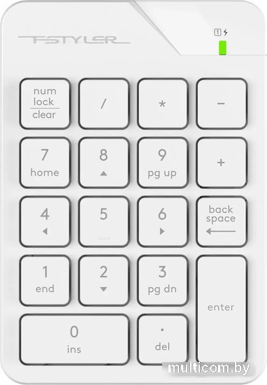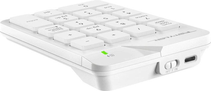 | Информация | Беспроводной цифровой блок FGK21C из серии офисной периферии Fstyler. Компактная модель рассчитана на работу с крупными числовыми данными. На FGK21C размещается 18 низкопрофильных клавиш с лазерной гравировкой, которая обеспечивает стойкость и долговечность символов. Ультратонкая форма кейкапов позволяет быстро набирать текст. Числовой блок дополняет ноутбуки и персональные компьютеры, в которых отсутствует Numpad, и упрощает работу с таблицами. Модель поддерживает беспроводное соединение 2.4 ГГц, радиус действия составляет до 15 метров. Для подключения используется USB nano-ресивер. Также в комплект входит Type-C адаптер, что расширяет возможности для подключения. Встроенный аккумулятор подзаряжается при помощи кабеля Type-C. Блок поддерживает два режима работы: синхронный и асинхронный. Для включения асинхронного режима требуется удерживать клавишу NumLock три секунды. |