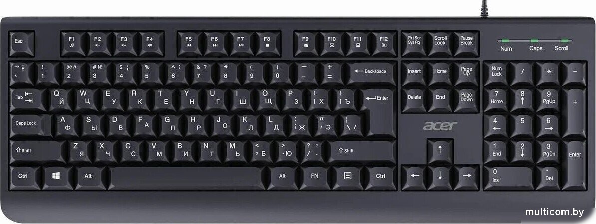 | Информация | - Клавиатура Acer OKW400 представляет собой классическую проводную клавиатуру, выполненную в строгом, минималистичном дизайне. Корпус изготовлен из прочного пластика черного цвета, а символы на клавишах нанесены четко и удобно для восприятия, как на русском, так и на английском языках. Клавиатура идеально подойдет для работы и повседневного использования с настольными компьютерами. - Данная модель оснащена стандартной раскладкой на 104 клавиши, включая цифровой блок, что обеспечивает комфортный и быстрый ввод данных. Благодаря наличию мультимедийных дополнительных клавиш, пользователь получает быстрый доступ к управлению мультимедиа и некоторыми функциями операционной системы. - Проводное подключение осуществляется через интерфейс USB, длина кабеля составляет 1.8 м, что позволяет удобно разместить клавиатуру на рабочем столе. Конструкция клавиатуры дополнена регулируемыми ножками, что позволяет выбрать оптимальный угол наклона для повышения эргономики при длительной работе. - Клавиши имеют классическую форму и средний профиль, без подсветки и дополнительных геймерских функций, что делает устройство отличным выбором для офисной работы. Клавиатура поддерживает работу с кириллической раскладкой и совместима с большинством ПК, работающих под управлением Windows и других операционных систем. |