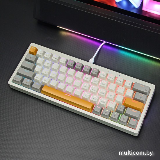 | Информация | ? Тип подключения: проводная (съемный провод из ПВХ длиной 1,5 м) ? Количество клавиш: 63 ? Количество цветов клавиш: 3 ? Технология изготовления клавиш: Double Injection из ABS-пластика ? Подсветка клавиш: 22 режима RGB-подсветки ? Подсветка букв на клавишах: полная подсветка всех английских и русских букв ? Подсветка клавиатуры: цветная боковая и задняя подсветка ? Anti-ghost, N -keys rollover (возможность одновременно нажимать и обрабатывать большое количество клавиш) ? Hotswap: возможность самостоятельной замены свитчей (переключателей) – 3/5 pin разъем ? Смазанные свитчи (переключатели), тонкая настройка больших клавиш ? Шумоизоляция: наличие пены и силиконовой прокладки |