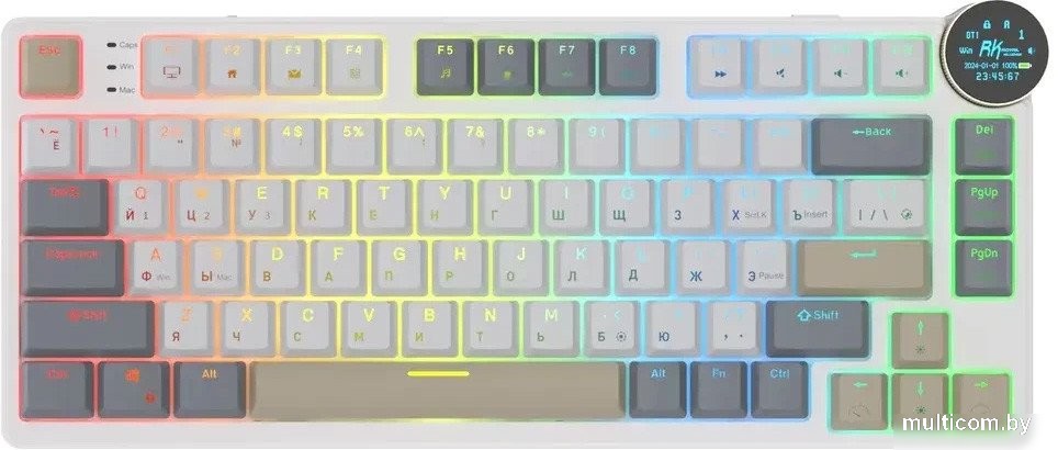 | Информация | ??Текст описания переведен при помощи искусственного интеллекта. - Клавиатура RK N80 переосмысляет понятие универсальности. На её небольшом экране отображаются кастомные GIF-изображения, даты, режимы подключения, раскладки для WIN/MAC и статус батареи. - Легко настраивайте громкость, режимы подключения, яркость подсветки и RGB-эффекты с помощью простого поворота или нажатия на ручку. - Наслаждайтесь стабильными соединениями благодаря Bluetooth 5.0, удобному 2.4GHz адаптеру и проводному USB-C режиму, что открывает безграничные возможности для вашей клавиатурной конфигурации. - В отличие от традиционных переключателей, кастомные низкопрофильные переключатели RK имеют меньшую дистанцию срабатывания, что обеспечивает более быструю реакцию и комфортный набор текста. Идеально подходит как для игр, так и для офисной работы. - Конструкция с верхним креплением обеспечивает надежное нажатие клавиш и повышенную обратную связь, что гарантирует стабильность и надежность во время интенсивных игровых сессий. - Клавиатура оснащена двумя слоями звукопоглощающей пены и силиконовой подложкой, что значительно снижает гулкость и шум, обеспечивая плавный и тихий набор текста. - С батареей на 3750 мАч клавиатура RK N80 TKL обеспечивает до 25 часов непрерывной работы с RGB-подсветкой и до 115 часов без неё. - Расширьте возможности вашего рабочего места с RK N80. Она оснащена встроенным USB-портом и портом Type-C, что позволяет подключать несколько устройств одновременно. - Полностью раскройте потенциал вашей N80 с помощью профессионального программного обеспечения, которое улучшает опыт настройки. Обратите внимание, что эта продвинутая функциональность доступна только при проводном подключении, что обеспечивает стабильный и полный контроль над настройками экрана, макросами и регулировкой подсветки. |