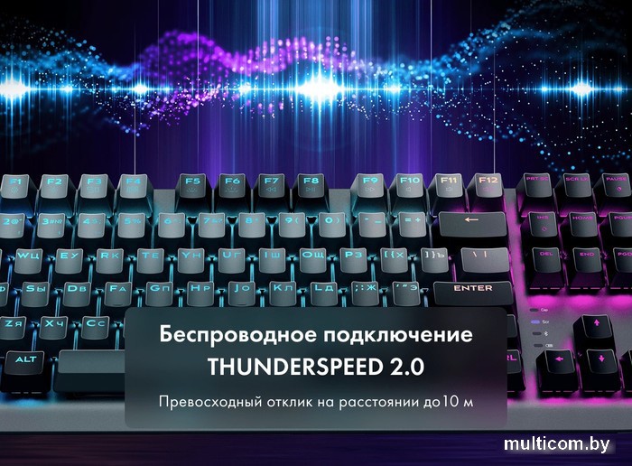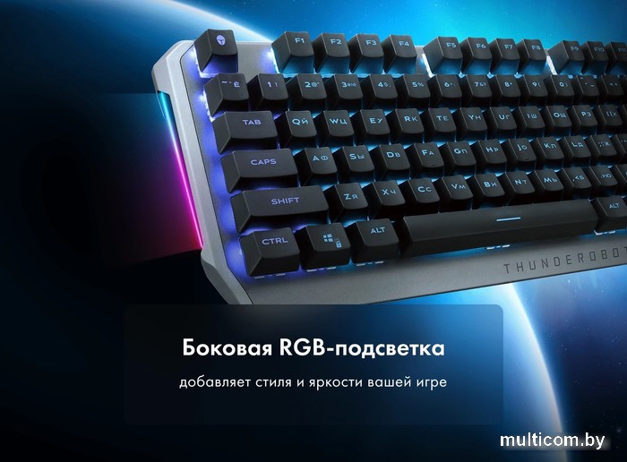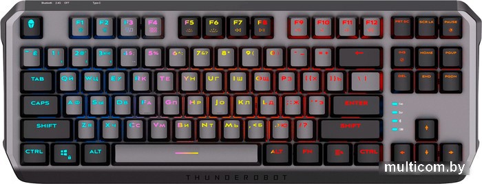| Информация | ? СyberSport Ready Используя устройства от Thunderobot со знаком "CyberSport Ready", вы можете быть уверены, что приобретаемый вами продукт оптимизирован для использования в киберспорте. Неважно, выберете ли вы игровой ПК, монитор или аксессуары — эта этикетка гарантирует, что продукт соответствует высоким требованиям соревновательных игр. Устройство было тщательно протестировано и настроено для обеспечения наилучшей производительности, чтобы обеспечить ваше преимущество перед оппонентами. ? Беспроводное подключениепо радиоканалу и Bluetooth с помощью технологии THUNDERSPEED 2.0 Обеспечивает превосходное время отклика на расстоянии до 10 метров. Использует улучшенное подключение по радиоканалу 2.4 ГГц через USB-приемник. ? Зарядка и работа от провода USB-A — USB-C Если игровая сессия затянулась, вы можете не переживать о низком заряде. Клавиатура поддерживает работу от USB-кабеля с одновременной зарядкой. ? Механические переключатели Thunderobot Custom Red Специально разработанные красные свитчи созданы Thunderobot для быстрого отклика, а также обеспечения тихого и плавного линейного хода при нажатии. Расчетный ресурс каждого переключателя - до 60 миллионов нажатий. ? RGB-подсветка со множеством эффектов и режимов PBT-клавиши двойного литья с русскоязычной раскладкой отлично отображают все эффекты встроенной RGB-подсветки. ? Боковая RGB-подсветка Двухсторонние RGB-панели на боковой части клавиатуры добавляют стиля и яркости вашей игре. ? Аккумулятор емкостью 2000 мА·ч Интеллектуальный алгоритм энергосбережения с отключением подсветки. После 2 минут бездействия клавиатура автоматически переходит в спящий режим. Вам доступны 140 часов работы от аккумулятора в режиме низкого энергопотребления. |